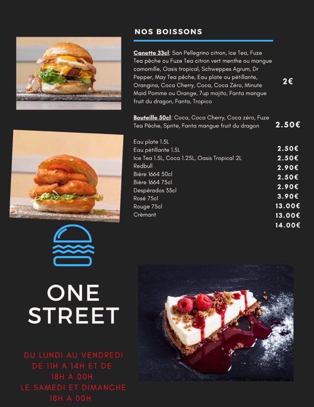 Welcome to One Street Burgers, a hidden gem nestled in Strasbourg at 49 Rue Finkwiller. This vibrant eatery is celebrated for its diverse menu, focusing primarily on an array of mouthwatering burgers. What makes One Street truly stand out is its commitment to quality and affordability, as reflected in glowing reviews from satisfied customers.